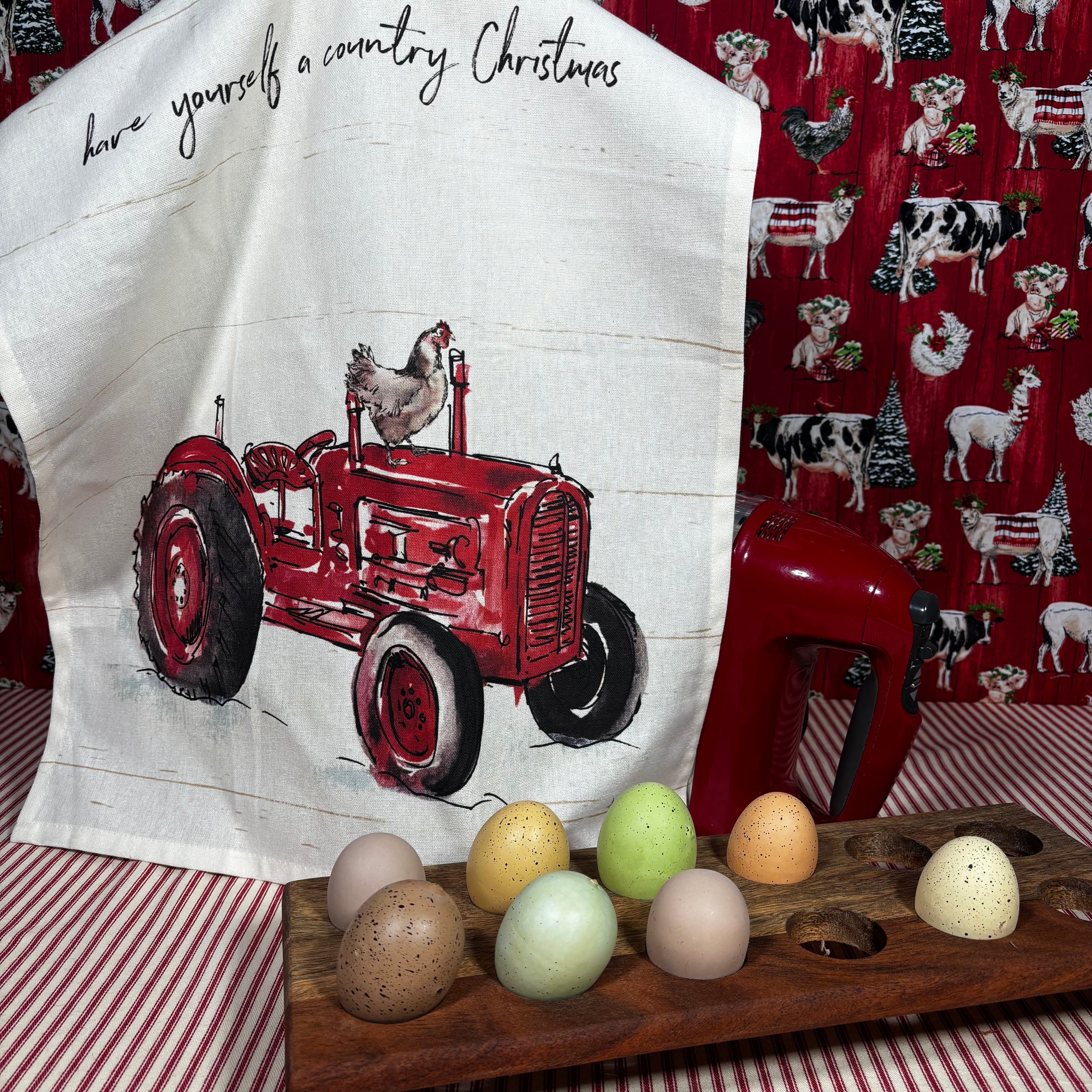 The charming barnyard animals on these Farmhouse Christmas Kitchen Towels will add some to whimsy to your holiday settings. They are a perfect addition to our matching farmhouse dinner plates and salt & pepper shakers.