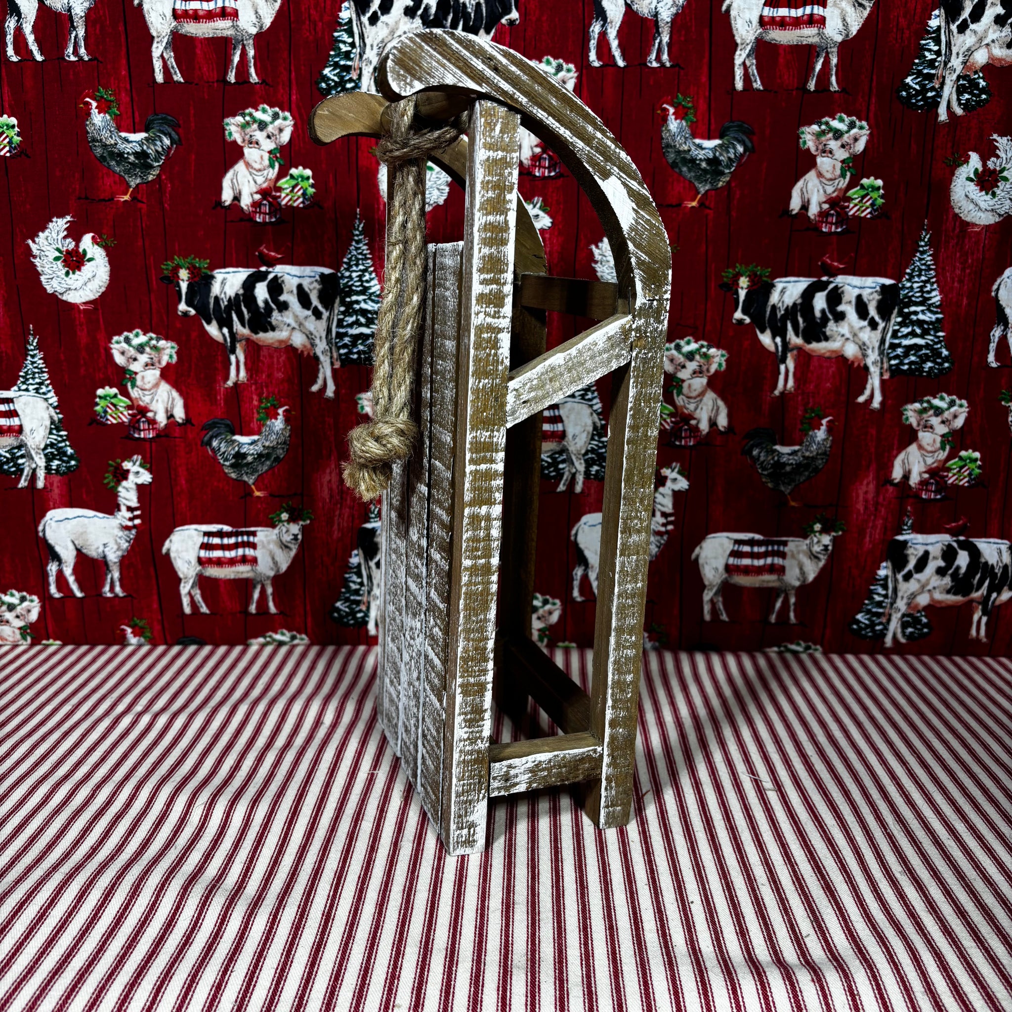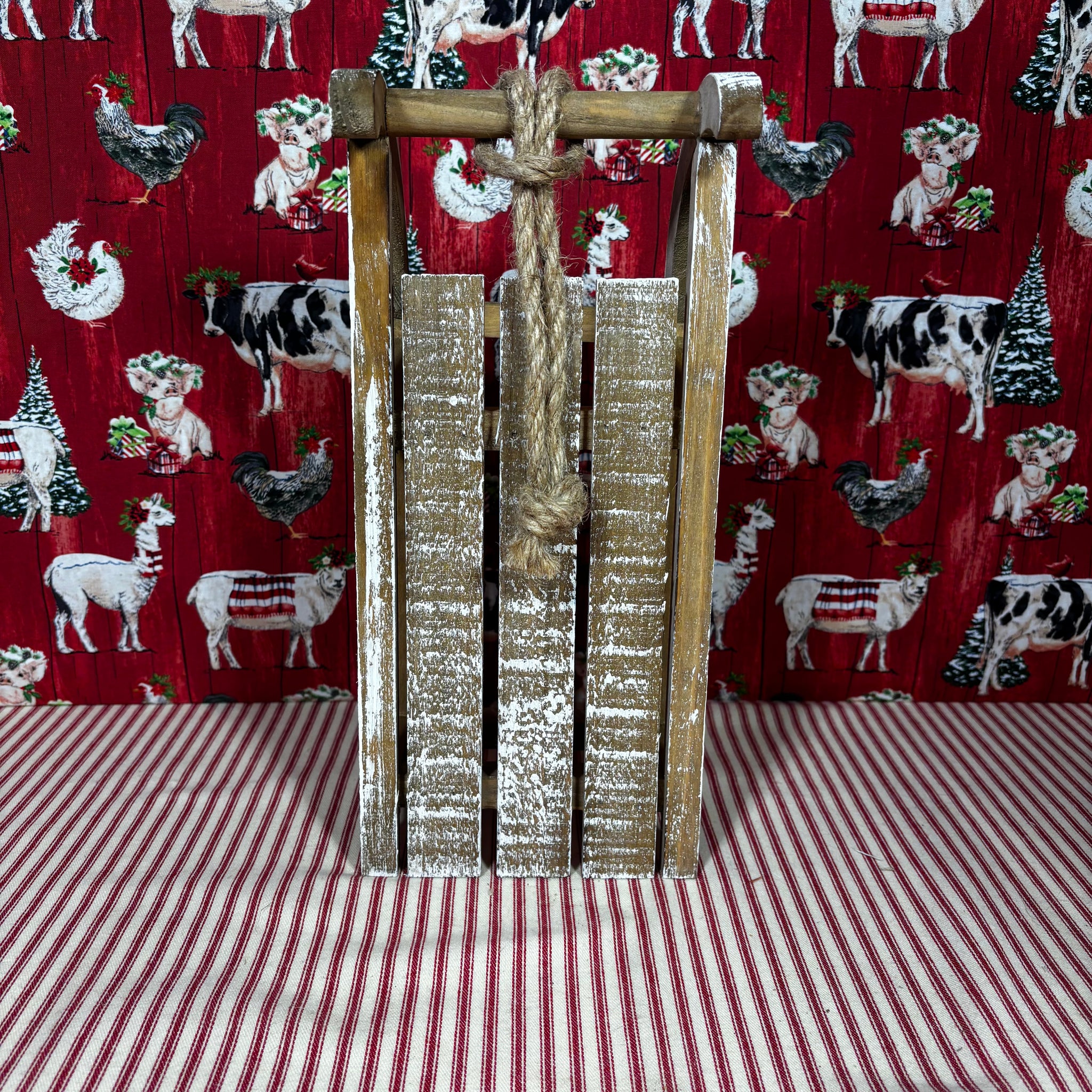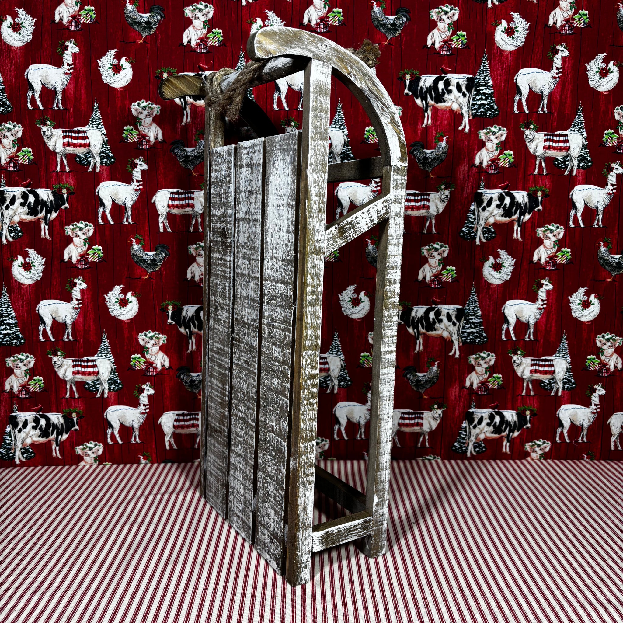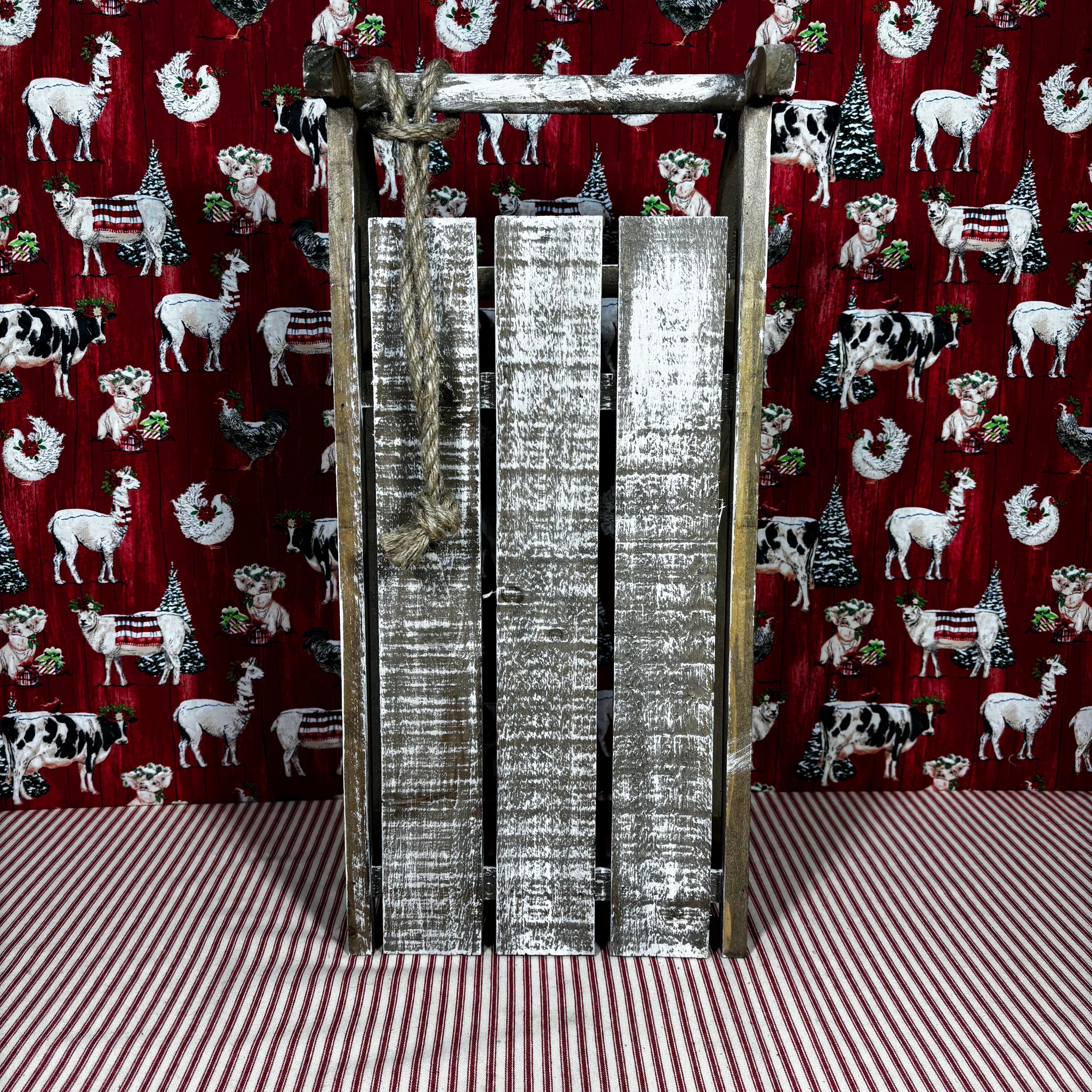 These rustic sleds will add depth and character to your holiday decorations. They even have a rope on the front.