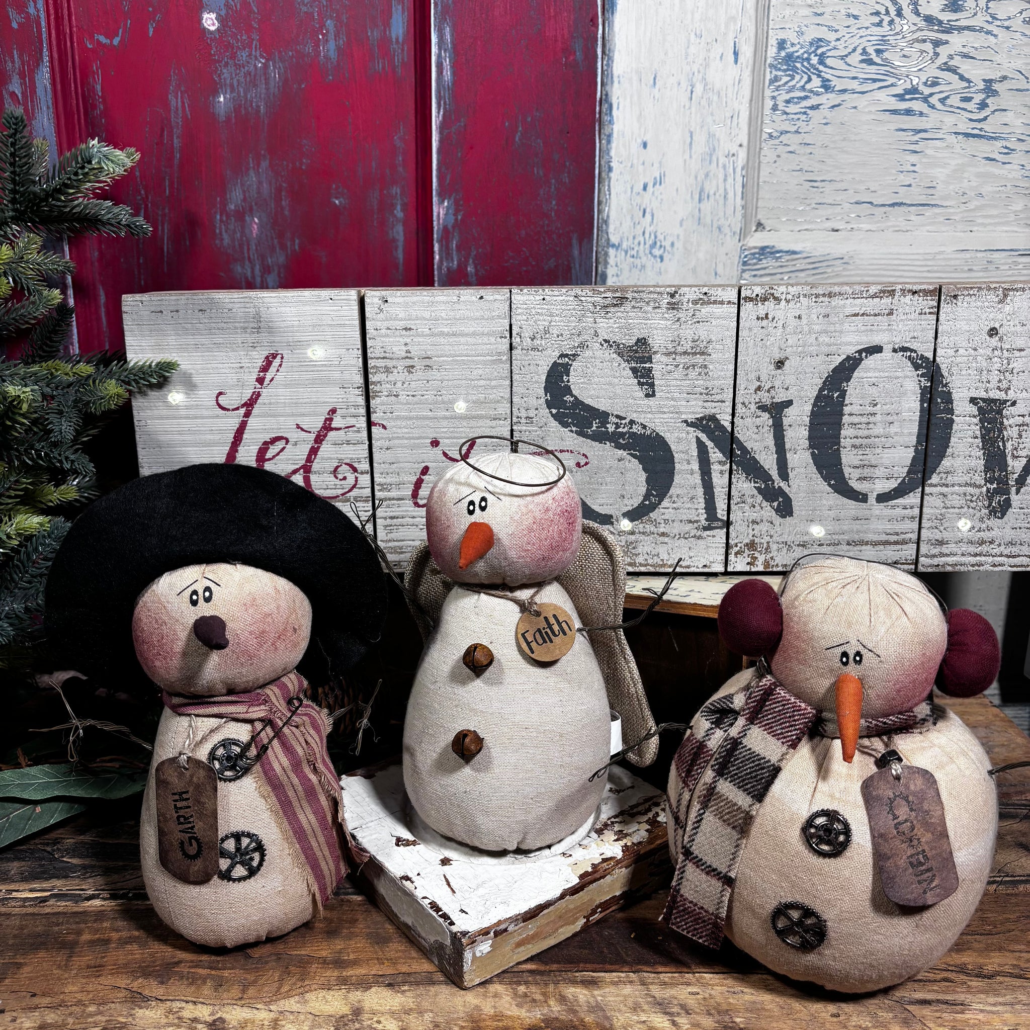 Our WINTER SNOWMAN will bring a smile to your family and friends. They each have their own special attention to detail. From gears for buttons to long hats and wire arms that can be easily moved into position.