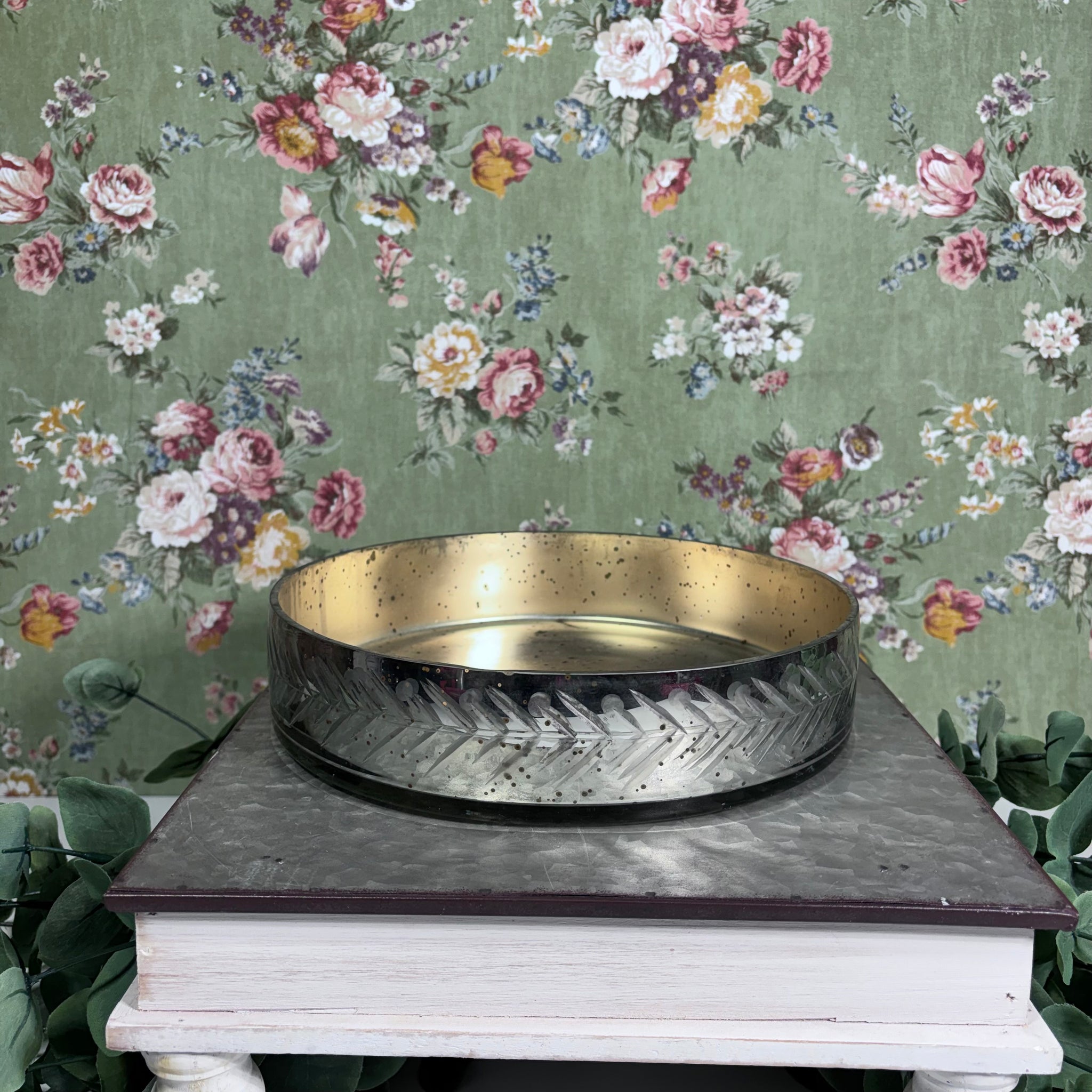 This Beautiful Metallic Glass Tray is perfect to display a small vase with flowers, jewelry or candles.