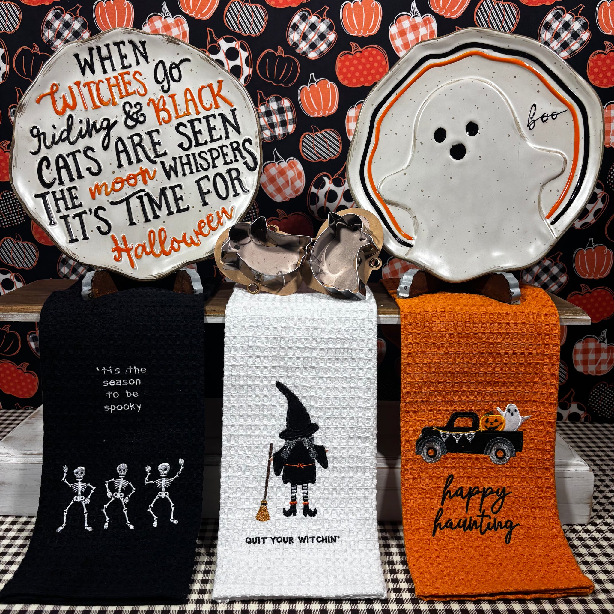 Start your Halloween entertaining with these Spooky Stoneware Cookie Plates. Each comes with a matching cookie cutter. (Hand Wash)