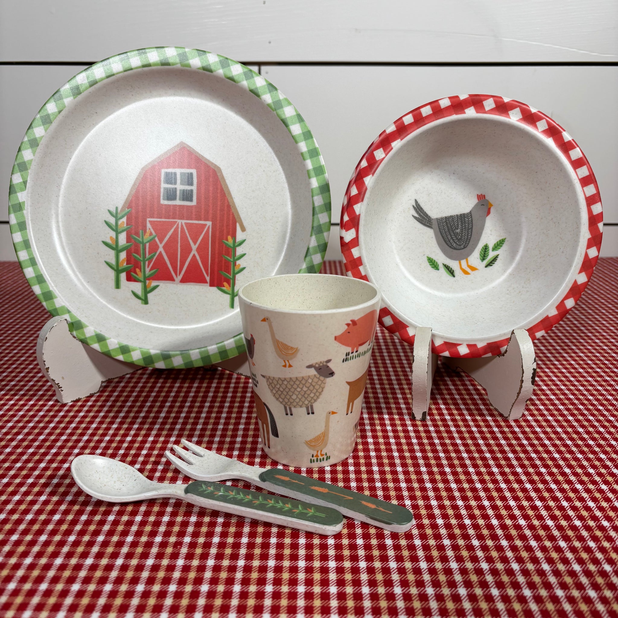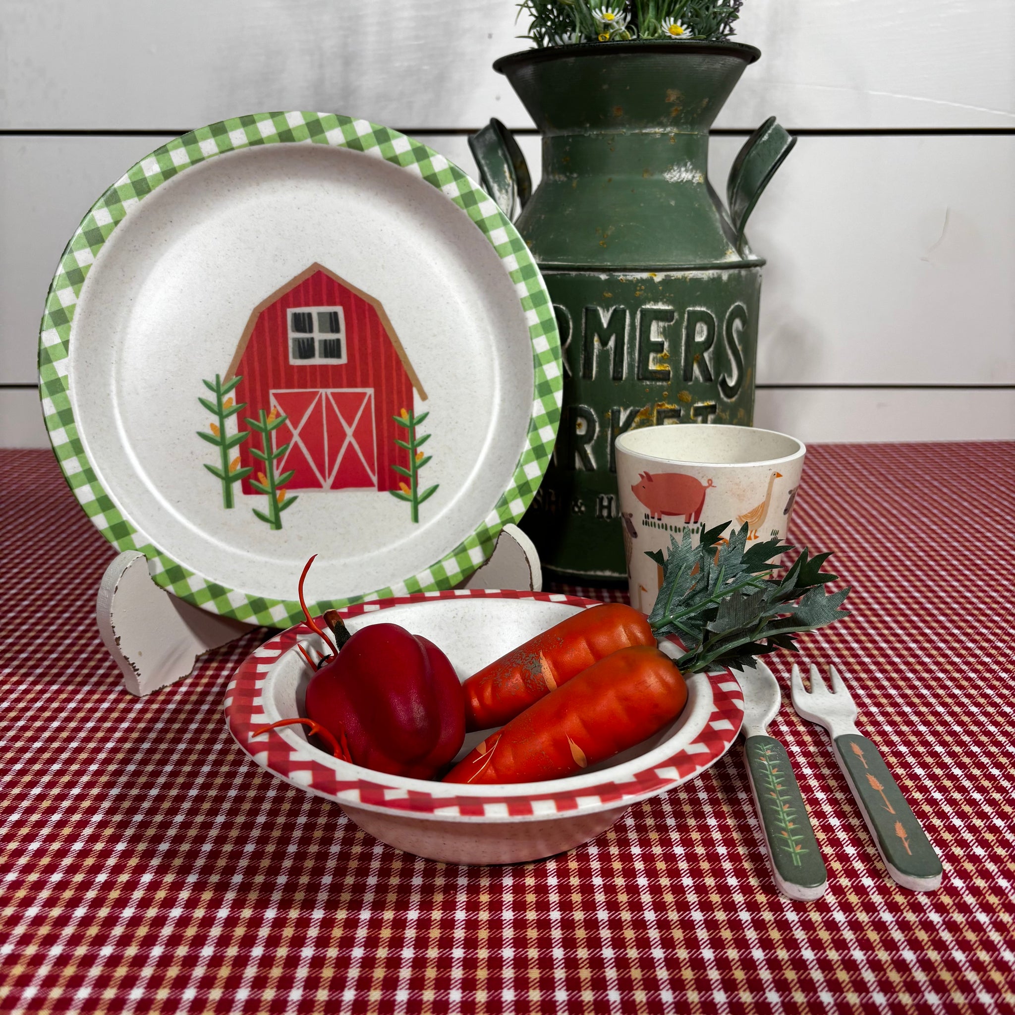 The little people in your family will love this adorable Little Farm Meal Set. The eye catching farmhouse theme in bright colors is so fun.